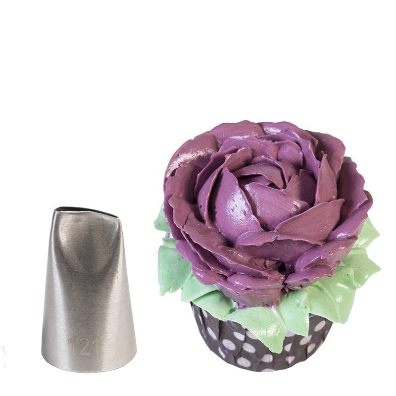 Насадка лепесток поможет в создании лепестков роз или других пышных цветов. Позволяет также сформировать красивые рюши и узоры на ваших десертах.
